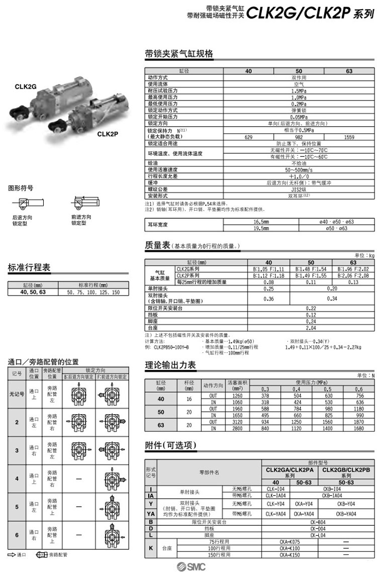 CLK2PA40-50,CLK2PA50-50,CLK2PA63-50,CLK2PB40-50,CLK2PB50-50,CLK2PB63-50,SMC帶鎖夾緊氣缸