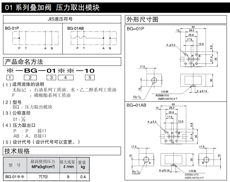 BG-01P-10,BG-01AB-10,DAIKIN疊加閥壓力取出模塊