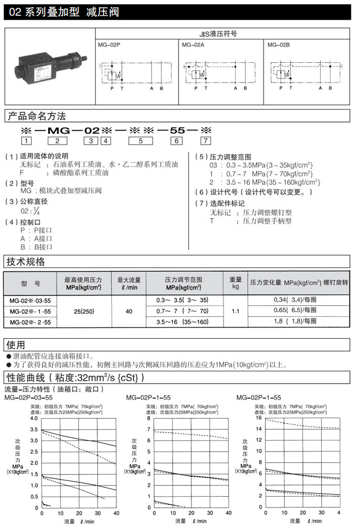MG-02P,MG-02A,MG-02B,MG-02P-03-55,MG-02A-03-55,MG-02B-03-55,DAIKIN疊加型減壓閥