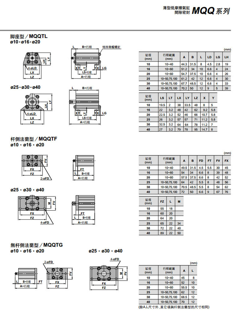 MQQTB10-10D,MQQTL10-10D,MQQTF10-10D,MQQTG10-10D,MQQTD10-10D,SMC低摩擦氣缸