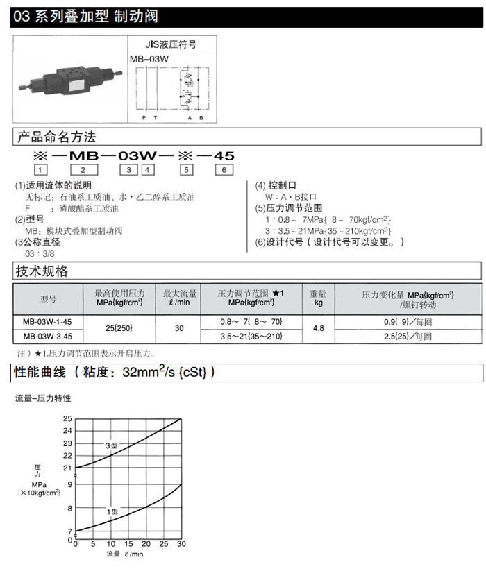 MB-03W-1-45,MB-03W-3-45,DAIKIN疊加型制動(dòng)閥