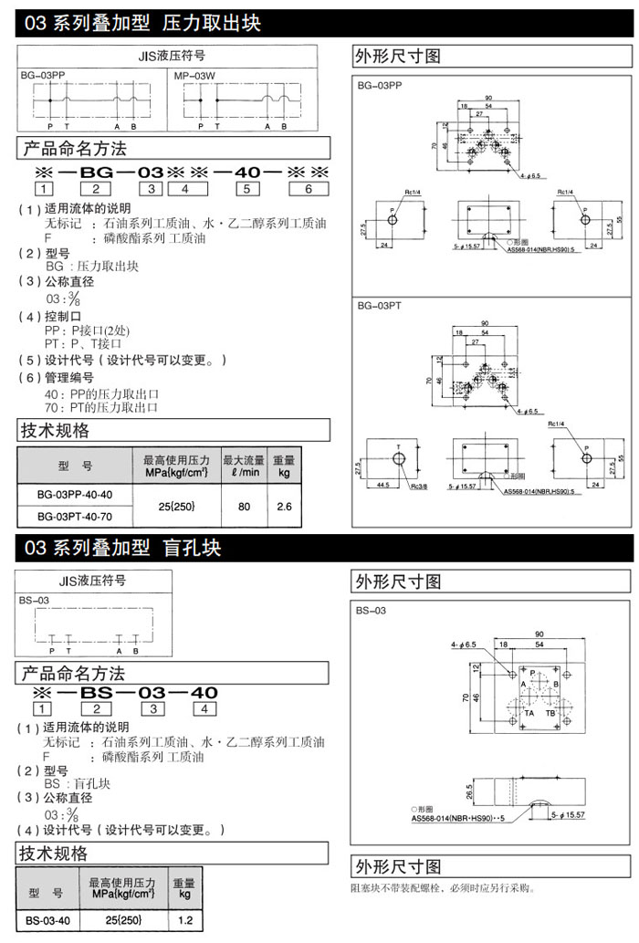 BG-03PP-40-40,BG-03PT-40-70,DAIKIN疊加型壓力取出塊