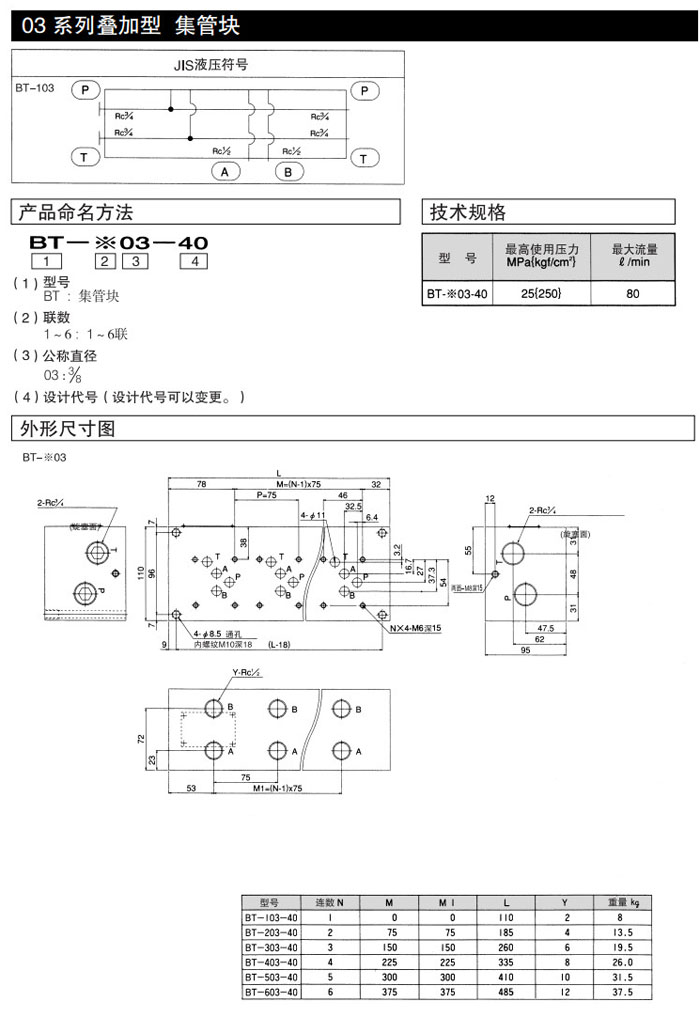 BT-103-10,BT-203-10,BT-303-10,BT-403-10,BT-503-10,BT-603-10,DAIKIN疊加型集管塊