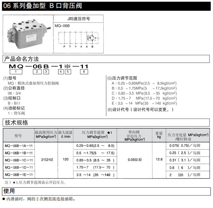 MQ-06B-1A-11,MQ-06B-1B-11,MQ-06B-1C-11,MQ-06B-1D-11,MQ-06B-1E-11,DAIKIN疊加型背壓閥