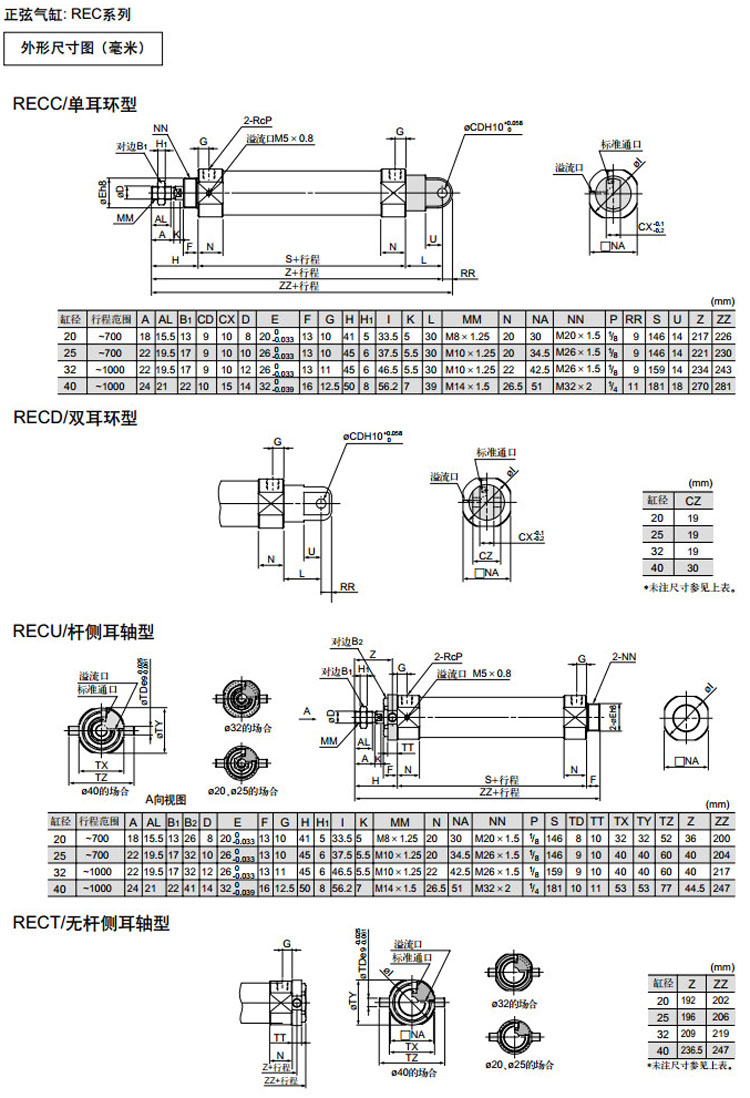RECB20-150,RECL20-150,RECF20-150,RECG20-150,RECC20-150,RECD20-150,RECU20-150,RECT20-150,SMC正弦氣缸
