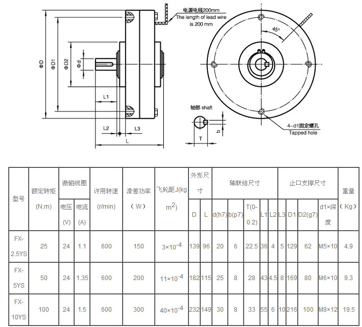 FX-2.5YS,FX-5YS,FX-10YS,薄型磁粉制動器