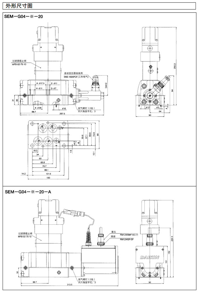 SEM-G03,SEM-G04,SEM-G06,SEM-G03-A-20,SEM-G04-A-20,SEM-G06-A-20,DAIKIN電磁先導(dǎo)型比例換向閥