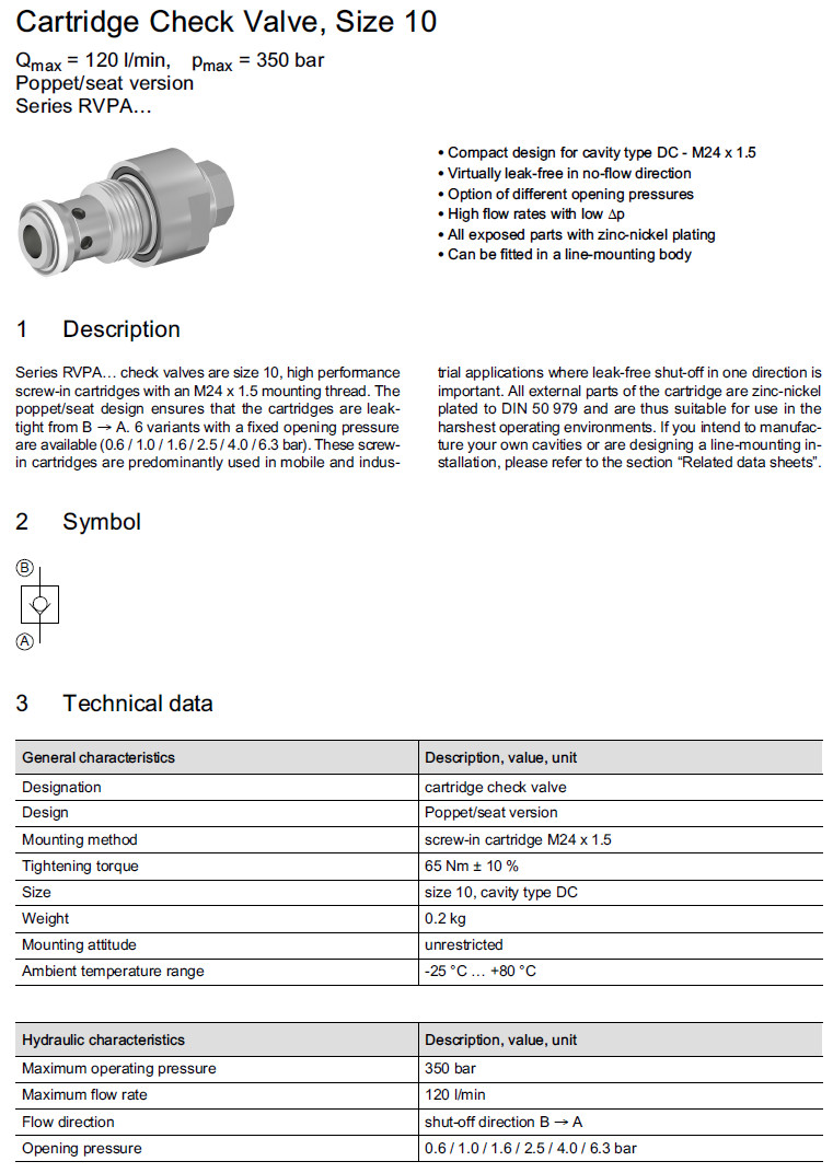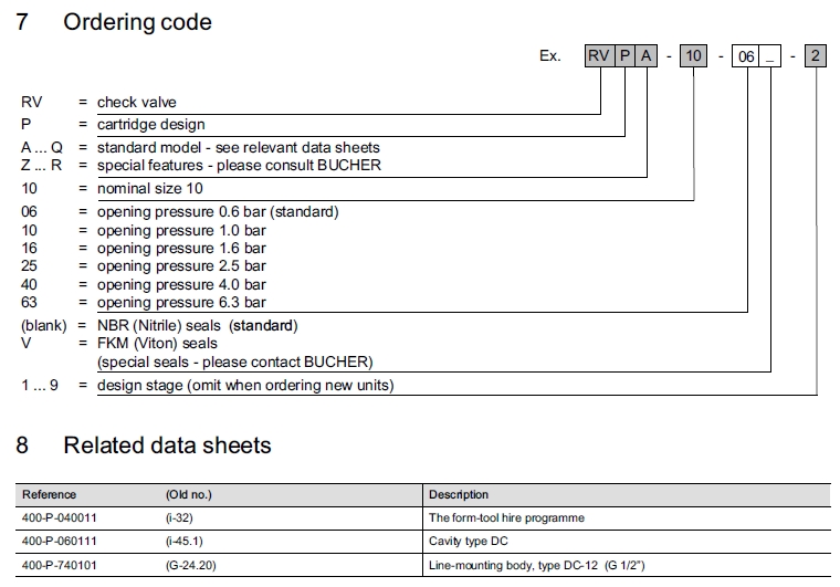 RVPA-10-06,RVPA-10-10,RVPA-10-16,RVPA-10-25,RVPA-10-40,RVPA-10-63,Bucher止回閥 |