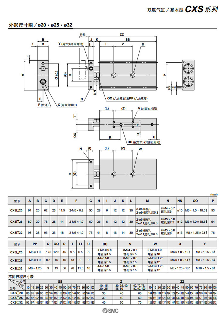 CXSM6,CXSM10,CXSM15,CXSM20,CXSM25,CXSM32,CXSL6,CXSL10,CXSL15,CXSL20,CXSL25,CXSL32,SMC雙聯(lián)氣缸