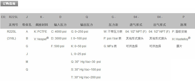 型號(hào): R22SLA,R22SLB,R22SLG,R22SLJ,R22SLM,R22SLQ,R22SLAV-FTW-04-04,中等流量減壓器