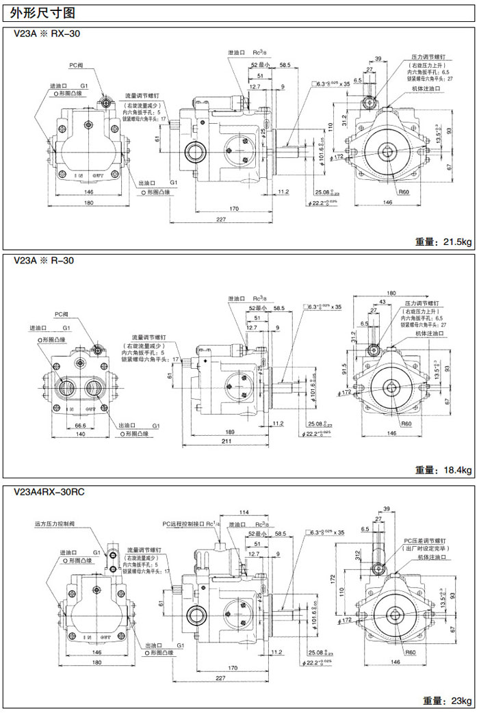 型號: V23A,V23C,V23D,V23SA,V23SAJS,V23A1RX-30,V23C11RHX-30,V23D11RAX-35,V23SA1ARX-30