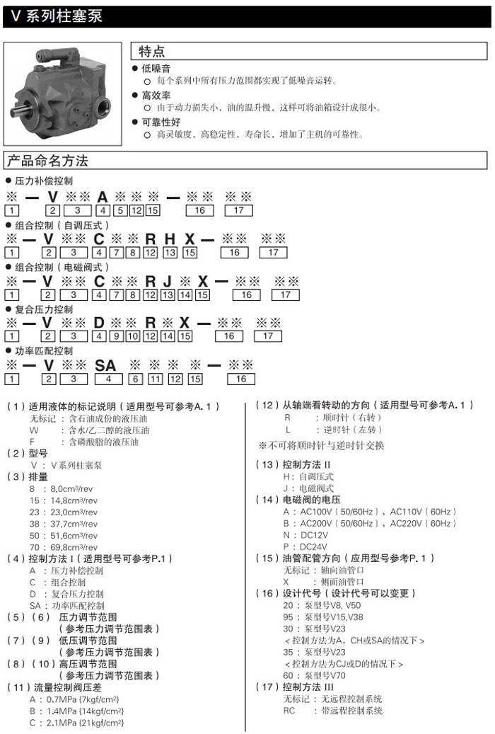 V15A,V15C,V15D,V15SA,V15A1RX-95,V8A1RX-20,V15C11RHX-95,V15D11RAX-95,V15A1RY-95,DAIKIN柱塞泵