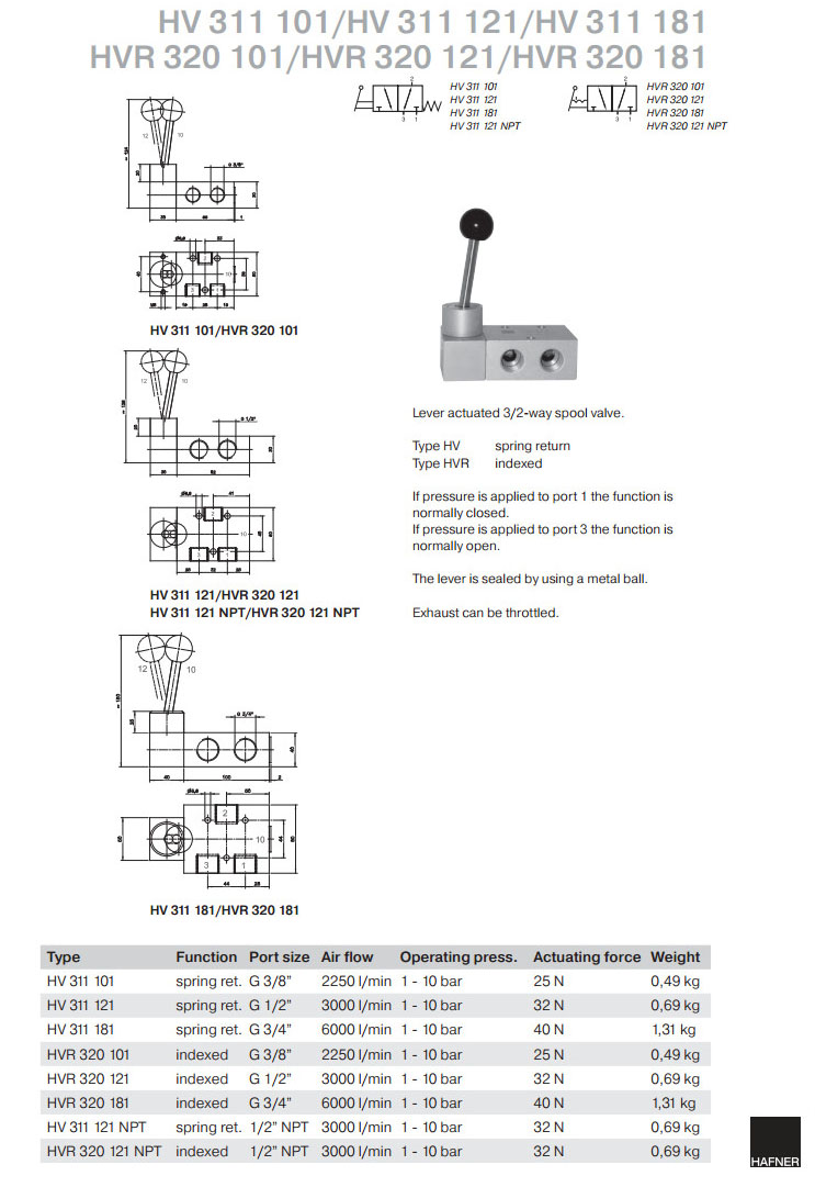 HV311101,HV311121,HV311181,HVR320101,HVR320121,HVR320181,HV311121NPT,HVR320121NPT,Hafner滑閥
