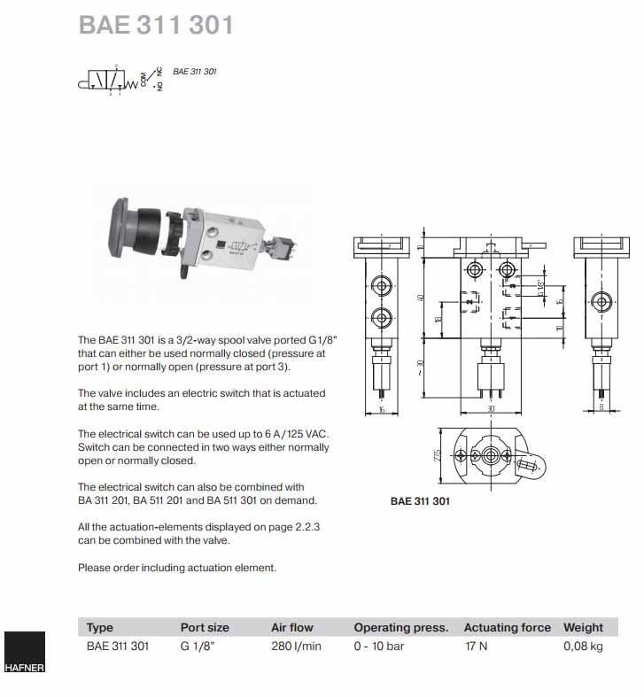 BAE311301,Hafner滑閥
