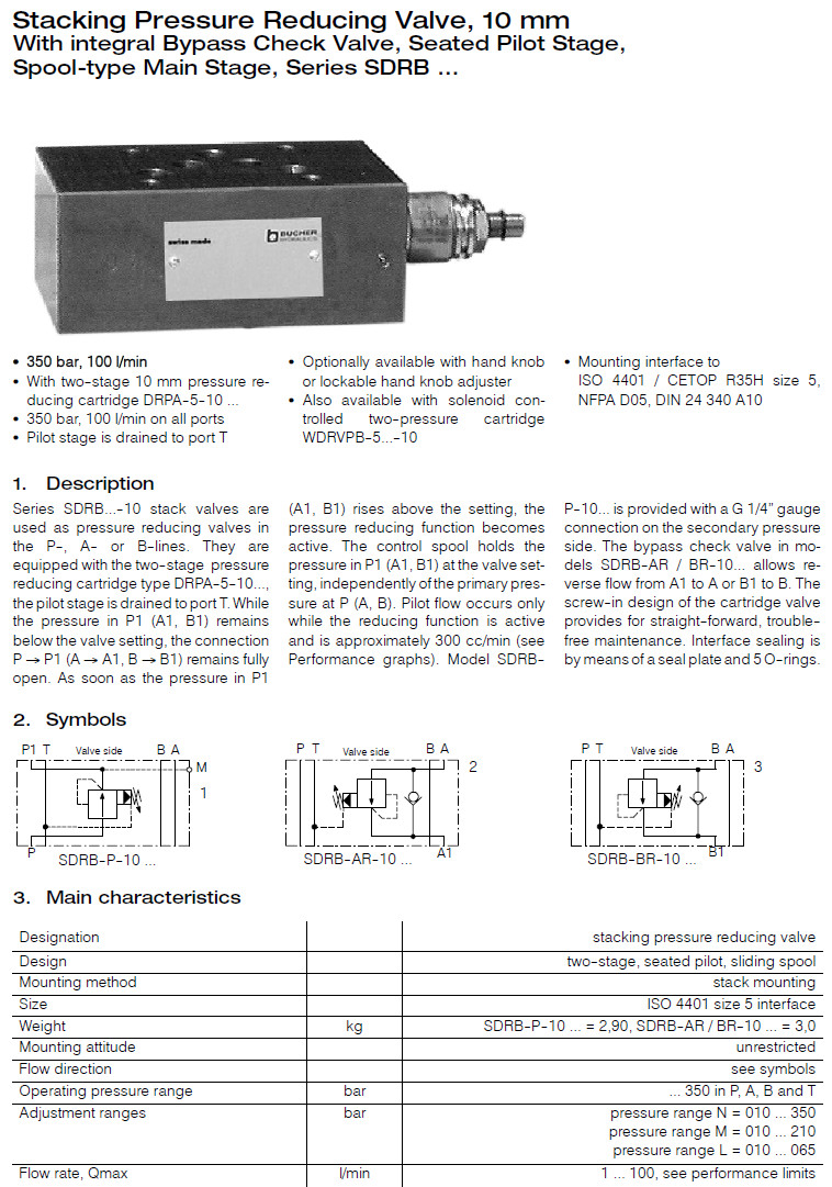 SDRB-AR-10-SN,SDRB-PR-10-HN,SDRB-BR-10-ZN,SDRB-AR-10-SL,SDRB-PR-10-ZL,Bucher減壓閥 |