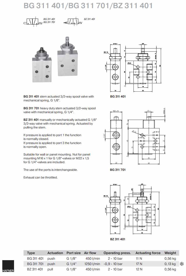 BG311401,BG311701,BZ311401,Hafner滑閥