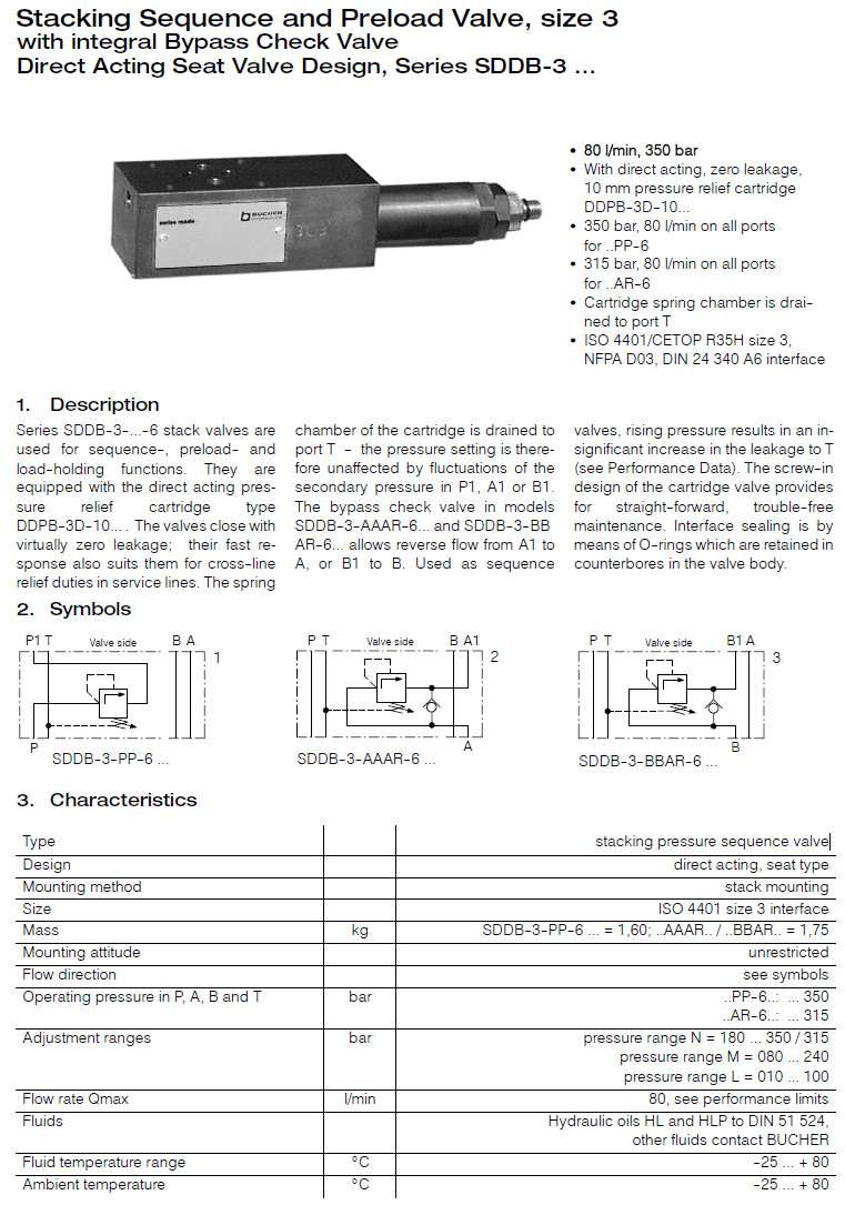 SDDB-3-AAAR-6-SN,SDDB-3-PPAR-6-SN,SDDB-3-BBAR-6-SN,Bucher疊加閥