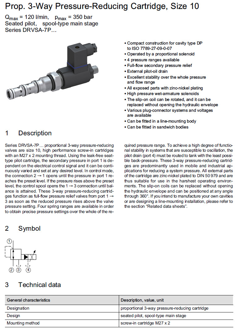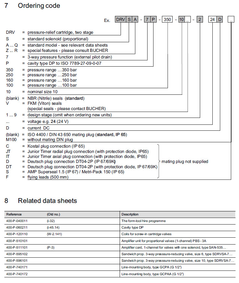 DRVSA-7P-350,DRVSA-7P-250,DRVSA-7P-160,DRVSA-7P-100,Bucher減壓閥 |