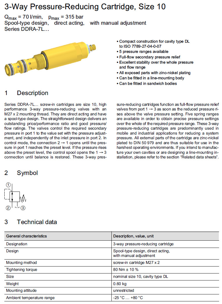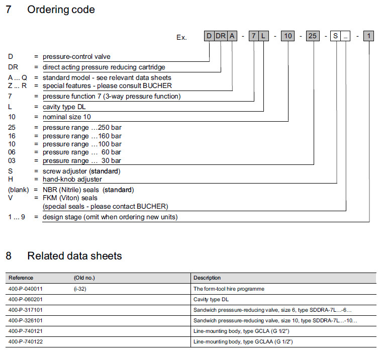 DDRA-7L-10-25,DDRA-7L-10-16,DDRA-7L-10-10,DDRA-7L-10-06,DDRA-7L-10-03,Bucher壓力控制閥 |