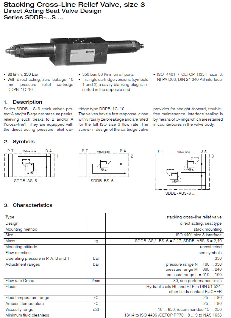SDDB-AS-6-SN,SDDB-BS-6-SM,SDDB-ABS-6-SL,SDDB-AS-6-SNV,SDDB-AS-6-SMV,Bucher跨線卸壓閥