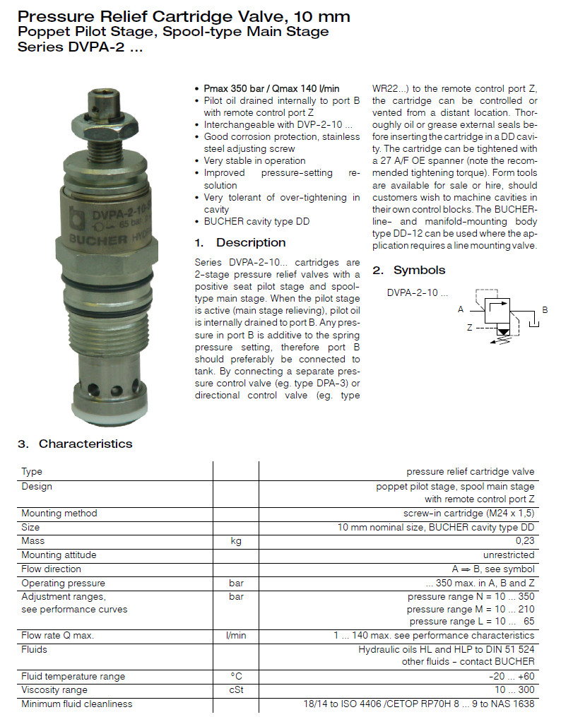 DVPA-2-10-SM-3,DVPA-2-10-SL-3,DVPA-2-10-HL-3,DVPA-2-10-HM-3,Bucher壓力控制閥