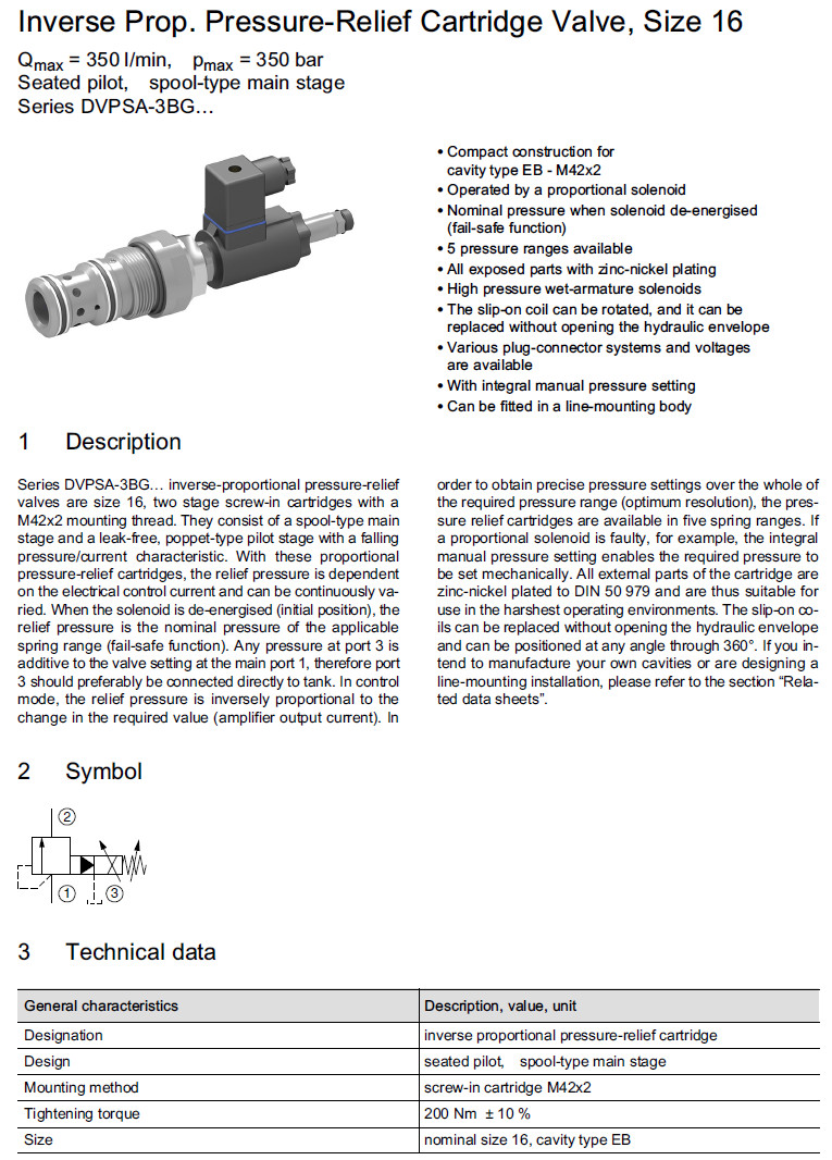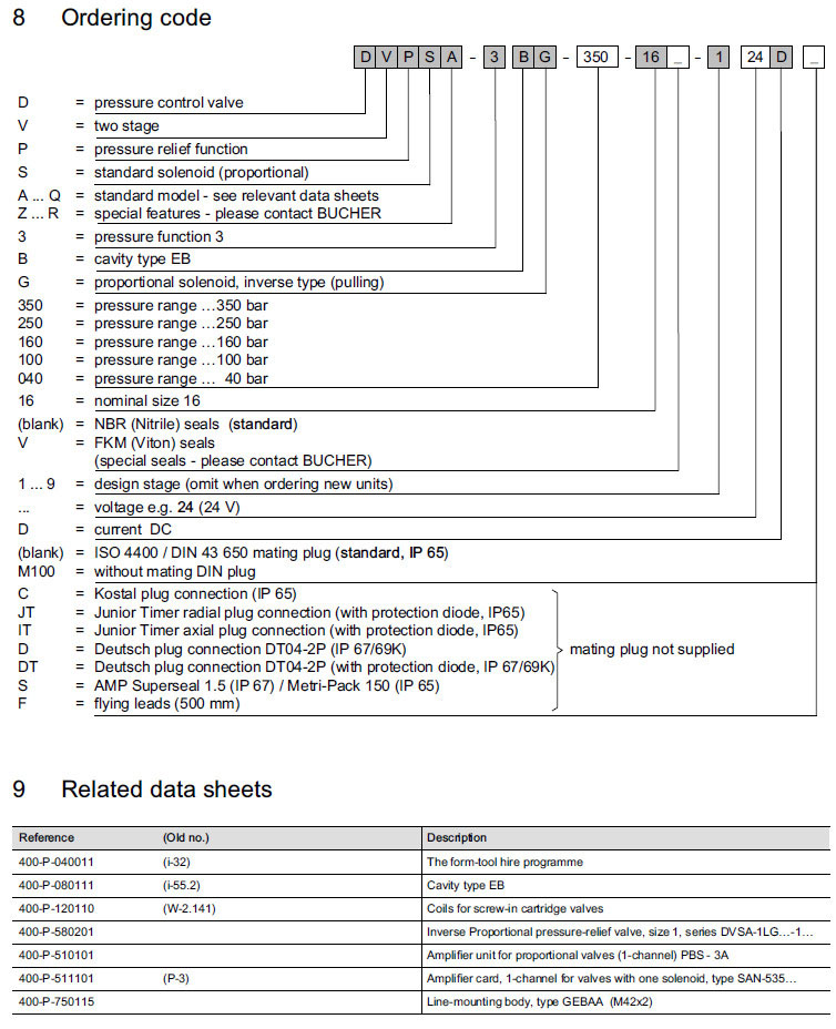DVPSA-3BG-350-16-1,DVPSA-3BG-250-16-1,DVPSA-3BG-160-16-1,Bucher壓力控制閥