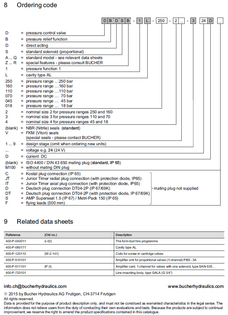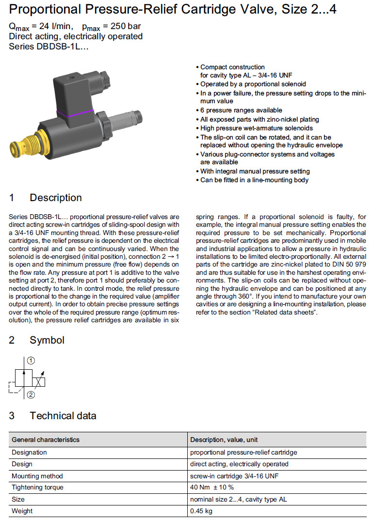 DBDSB-1L-250-2-3,DBDSB-1L-160-2-3,DBDSB-1L-070-3-3,DBDSB-1L-045-4-3,Bucher壓力控制閥