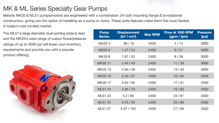 MK204,MK206,MK208,MK2011,MK2013,MK2015,MK2017,ML5119,ML5123,ML5125,ML5127,Metaris齒輪泵