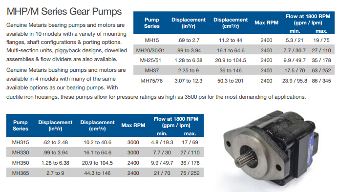 MH15,MH20,MH30,MH31,MH25,MH51,MH37,MH75,MH76,MH315,MH330,MH350,MH365,Metaris齒輪泵