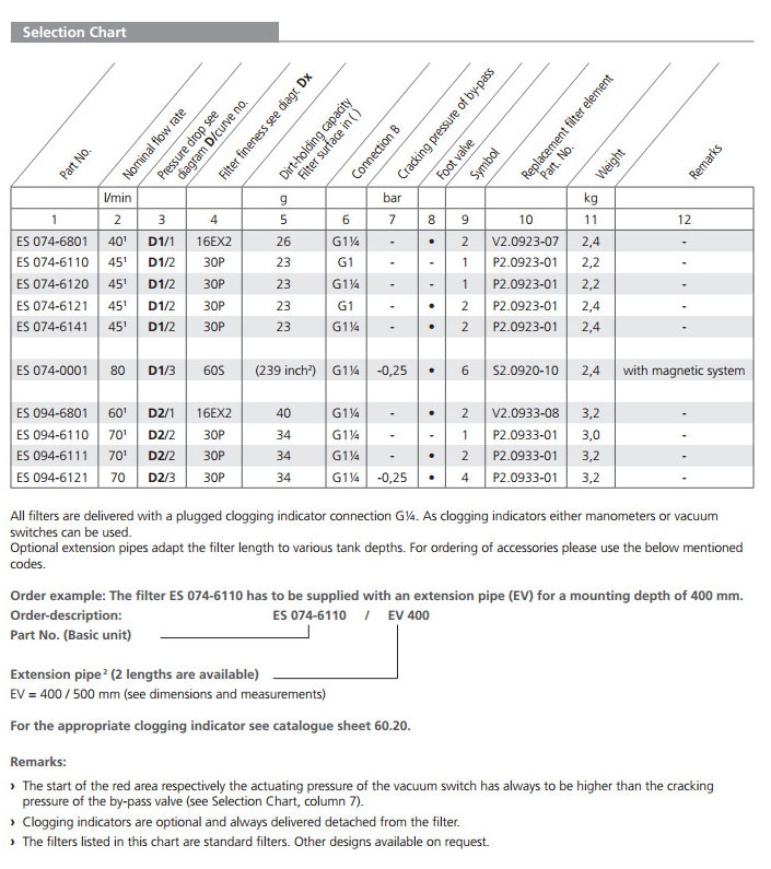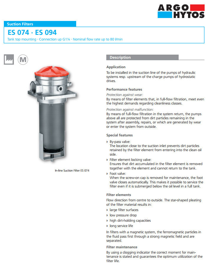 ES074,ES094,ARGO吸油過濾器