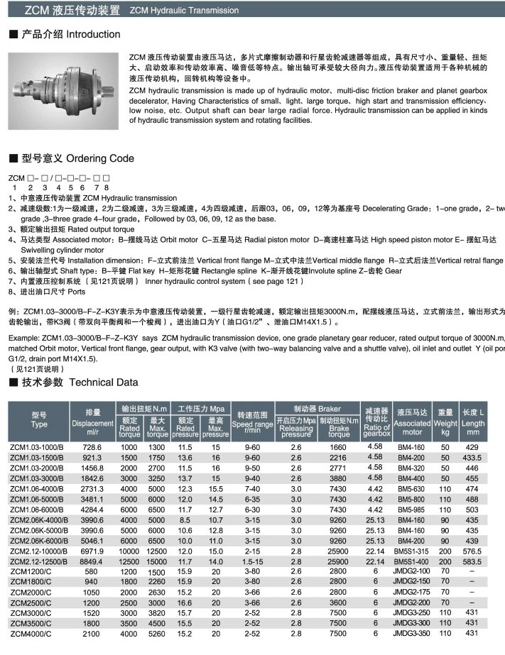ZCM1.03,ZCM1.06,ZCM2.06,ZCM2.03,ZCM2.09,ZCM3.12,ZCM3.20,ZCM3.38,ZCM4.12,ZCM1.03-5000/B,液壓傳動(dòng)裝置
