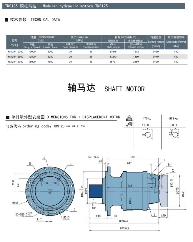 TMS125-10000,TMS125-12500,TMS125-15000,滾柱馬達(dá)