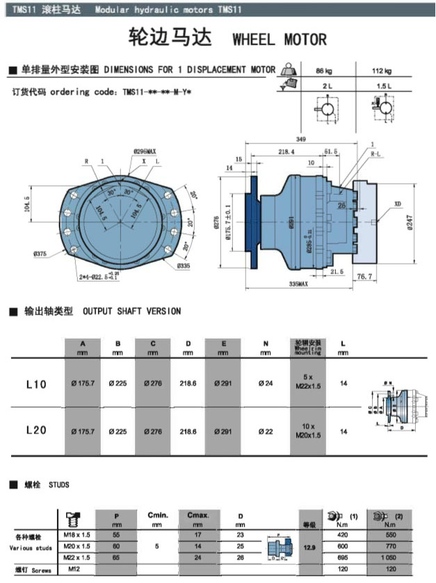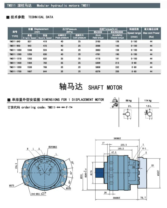 TMS11-840,TMS11-950,TMS11-1050,TMS11-1260,TMS11-1270,TMS11-1400,TMS11-1550,TMS11-1770,滾柱馬達