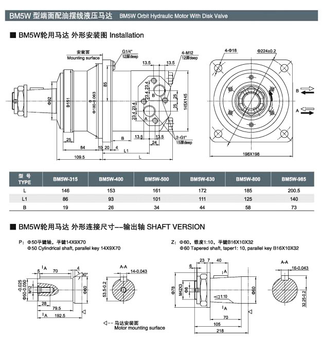 BM5W-315,BM5W-400,BM5W-500,BM5W-630,BM5W-800,BM5W-985,擺線液壓馬達(dá)