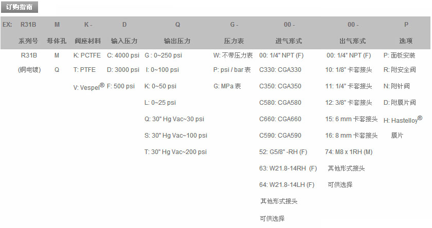 型號: R31BMK,R31BMT,R31BMV,R31BQK,R31BQT,R31BQV,R31BMK-CGW-C590,R31BQV-FTG-00,雙級式減壓器