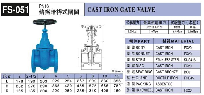 FS-051鑄鐵暗桿式閘閥說(shuō)明: