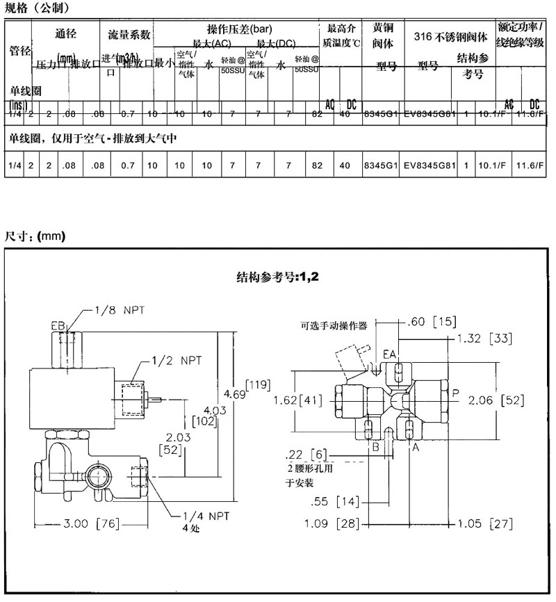8345G1,EV8345G81,asco緊湊型通用電磁閥