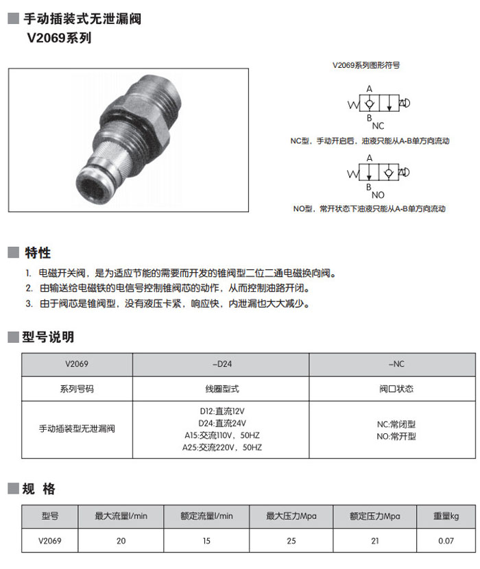 V2069-D24-NC,V2069-D24-NO,V2069-D12-NC,V2069-D12-NO,V2069-A15-NC,V2069-A15-NO,手動插裝式無泄漏閥