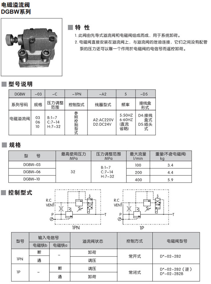 型號: DGBW-03,DGBW-06,DGBW-10,DGBW-03-B-1PN-A2-5-D4,DGBW-10-H-1PN-D2-6-D5,電磁溢流閥