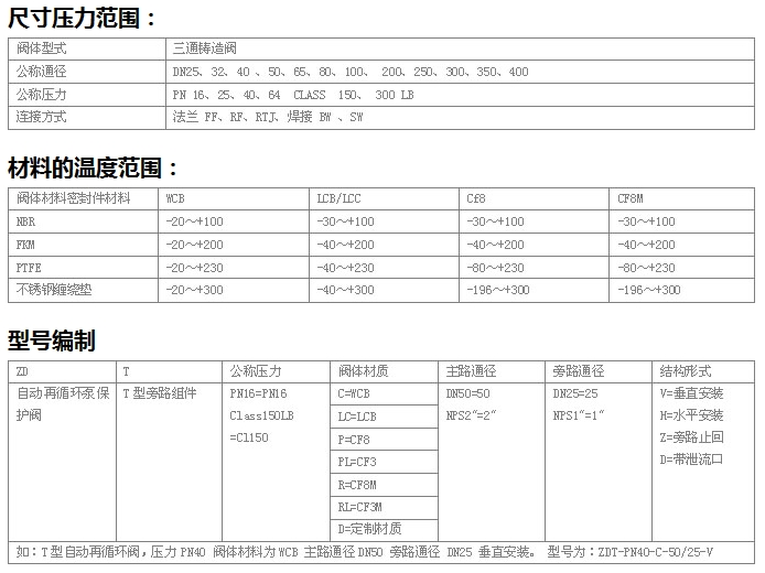 止回:自動(dòng)再循環(huán)閥還具有止回閥的作用,防止液體回流到泵體中。ZDT旁路止回為可選功能。