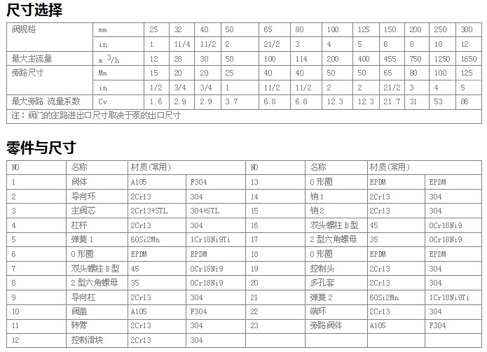其它旁路尺寸可按要求制作;最大的旁路流量取決于最大的Kv值。