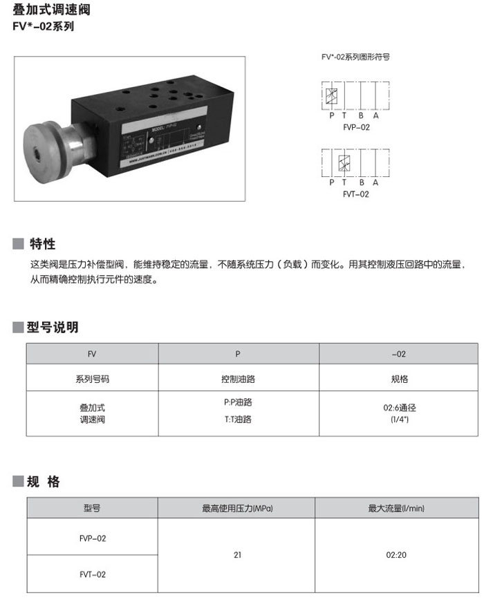 FVP-02,FVT-02,疊加式調(diào)速閥
