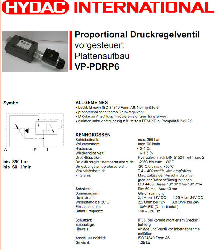 VP-PDR6087D01-24PG/N,VP-PDR6330D01-24PG/N,VP-PDR6500D01-24PG/N,HYDAC比例減壓閥