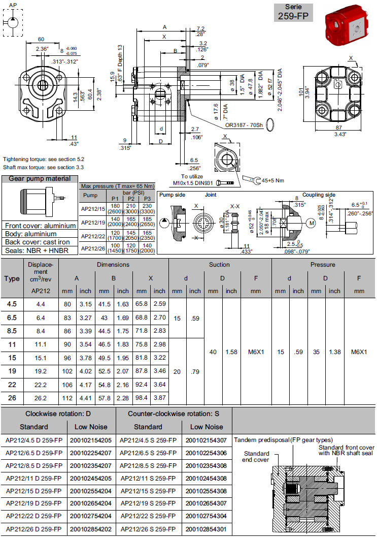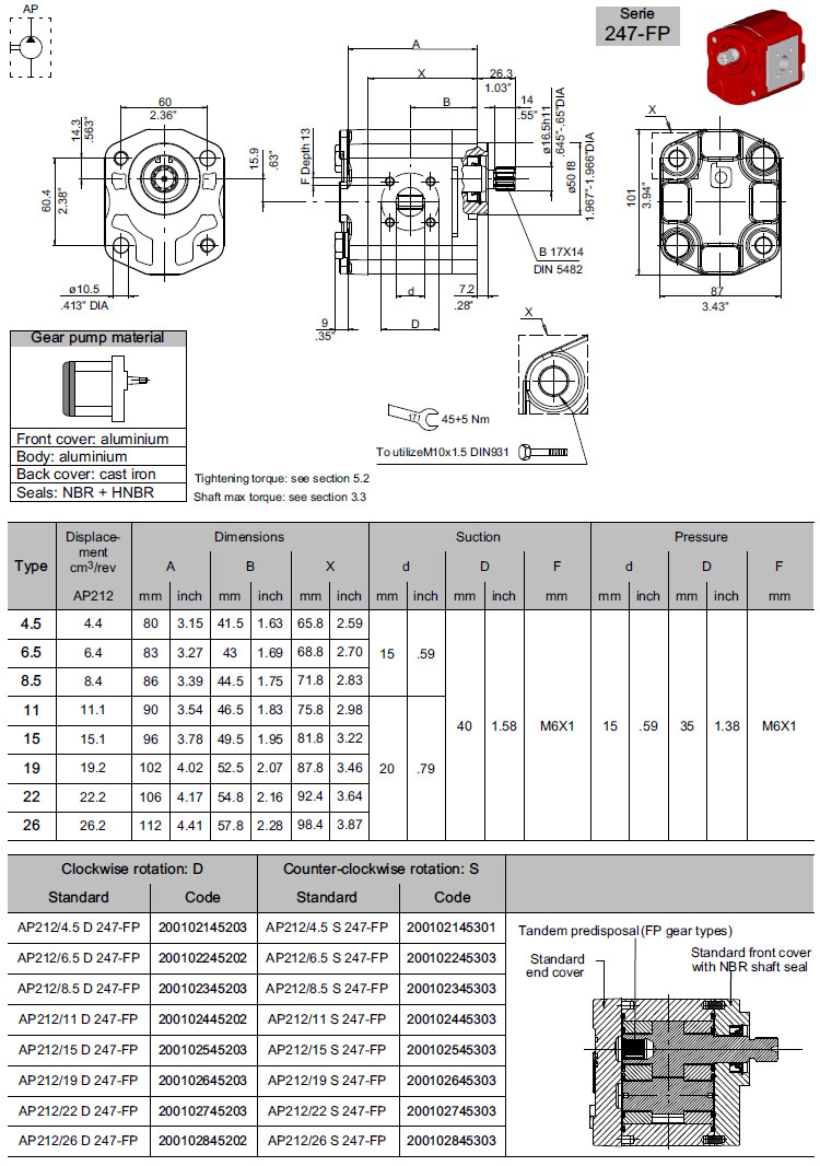 AP212/6.5-D-218-FP,AP212/11,AP212/15,AP212/19,AP212/22,Bucher外嚙合齒輪泵