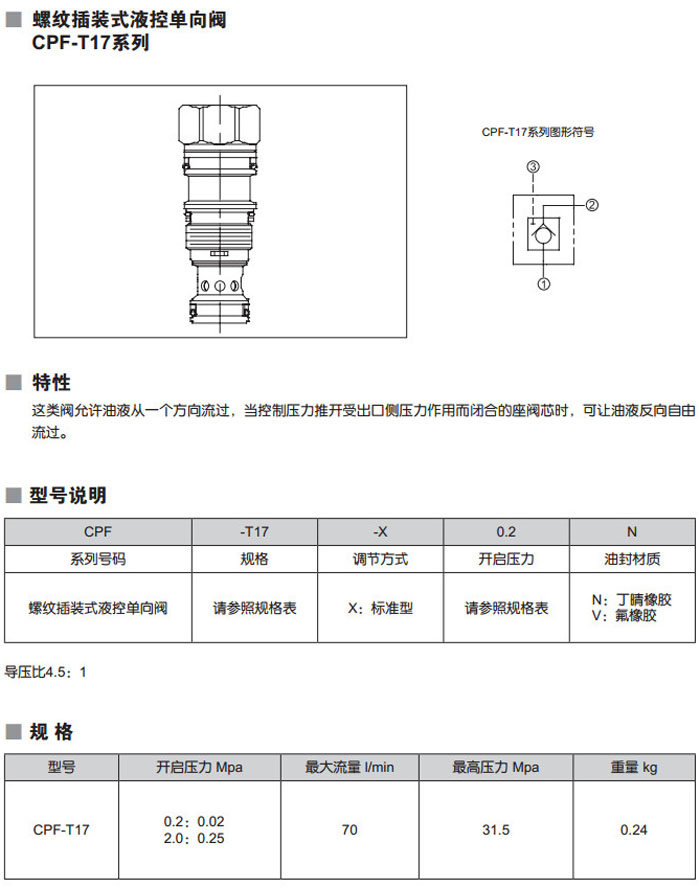 CPF-T17-X0.2N,CPF-T17-X0.2V,CPF-T17-X2.0N,CPF-T17-X2.0V,螺紋插裝式液控單向閥