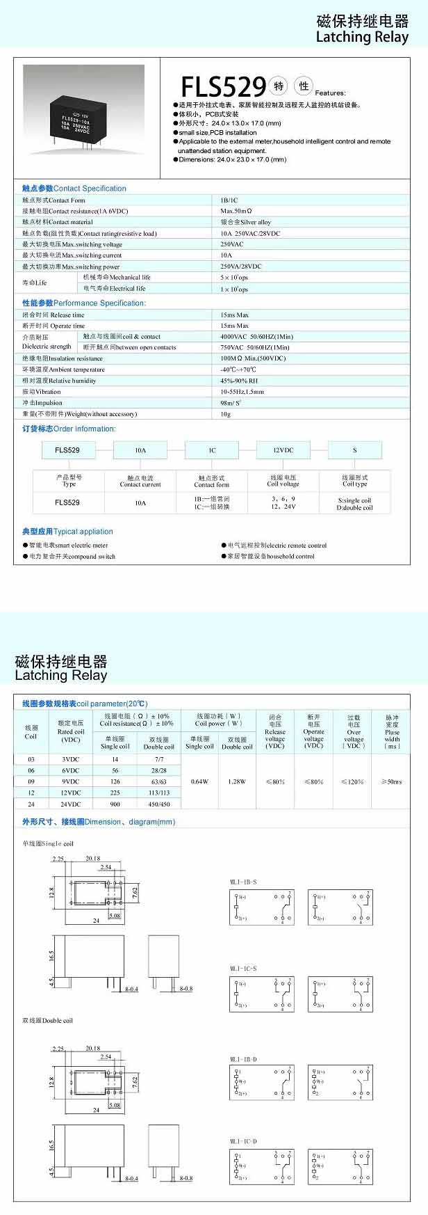 FLS529-10A,磁保持繼電器