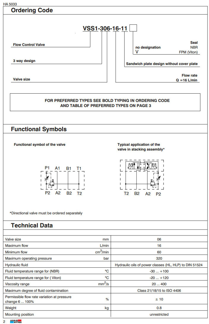 VSS1-306-16-11,ARGO 3通流量控制閥