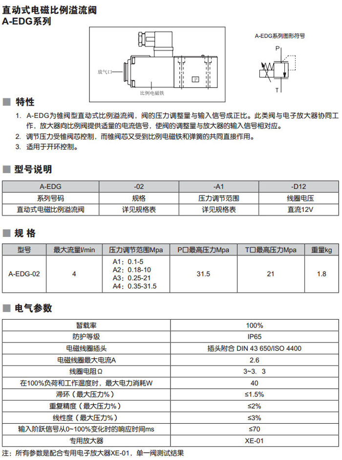 A-EDG-02-A1-D12,A-EDG-02-A2-D12,A-EDG-02-A3-D12,A-EDG-02-A4-D12,直動式電磁比例溢流閥
