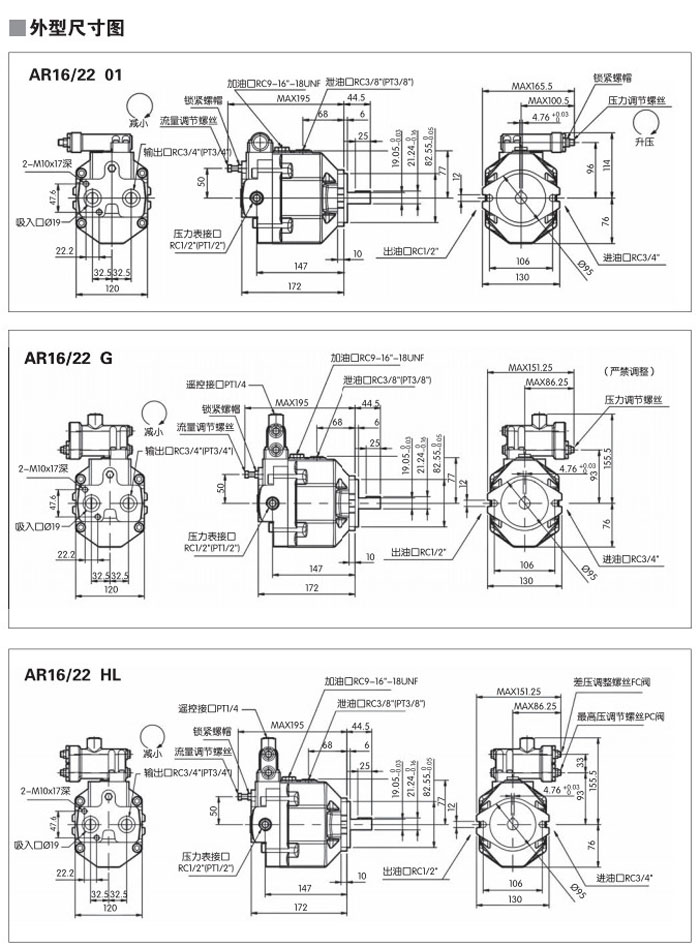 AR16,AR22,AR16FR01BSK10X,AR22FR01BSK10X,AR16FL01CSK10X,AR22FLHLCG10X,雙聯(lián)變量柱塞泵