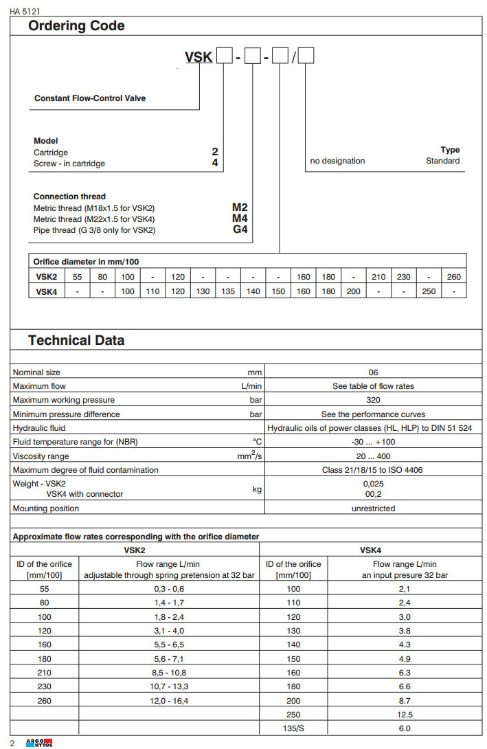 VSK2-M2,VSK2-M4,VSK2-G4,VSK4-M2,VSK4-M4,VSK4-G4,ARGO恒流控制閥